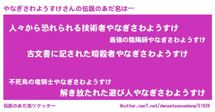 | ヘコむあだ名 | 『やなぎさわようすけ(爆)』『やなを』 |