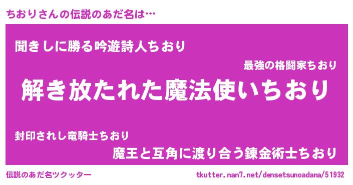 | ヒーロー風カッコイイあだ名 | 『魔戒騎士チオ』『ネオチオリ』 |