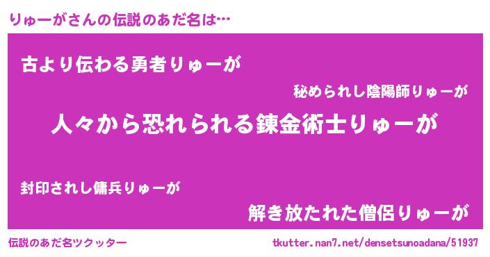 | ヒーロー風カッコイイあだ名 | 『仮面リュダー』『愛の使者りゅーが』 |