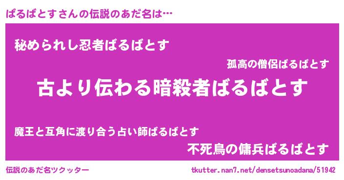 | 胡散臭い通販商品みたいなあだ名 | 『来世でも幸せになれる健康食品…その名も「ばるばとす」』 |