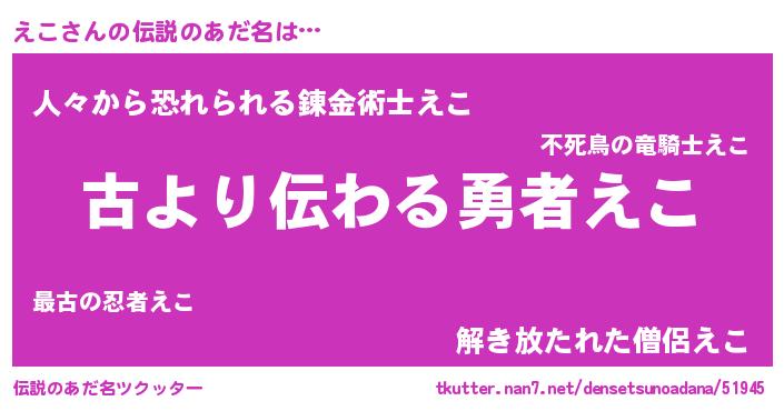 | 胡散臭い通販商品みたいなあだ名 | 『来世でも幸せになれる水素水…その名も「えこ」』 |