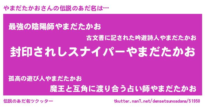 | 女子向けラノベタイトル風あだ名 | 『やまだたかおストレイドッグス』 |