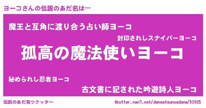 | 意味不明あだ名 | 『とにかく怪しいヨーコ』『自称ヨーコ』 |