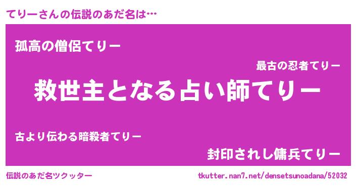 | ヒーロー風カッコイイあだ名 | 『慈愛の使者てりー』『超時空戦士テリー』 |