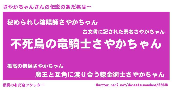 | ヒーロー風カッコイイあだ名 | 『スーパーサヤカチャン』『天弓騎士サヤ』 |