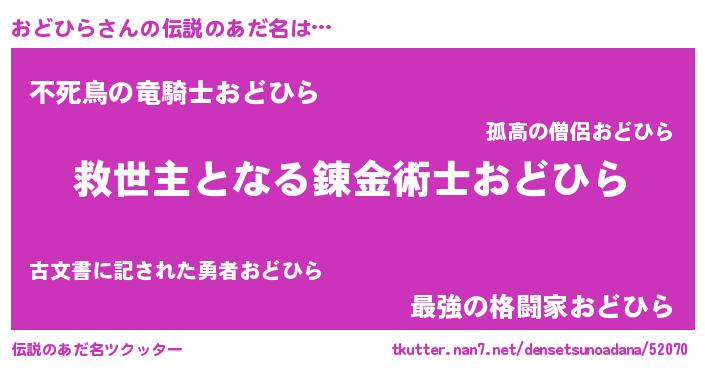 | ヒーロー風カッコイイあだ名 | 『天空の使者おどひら』『銀牙騎士オド』 |