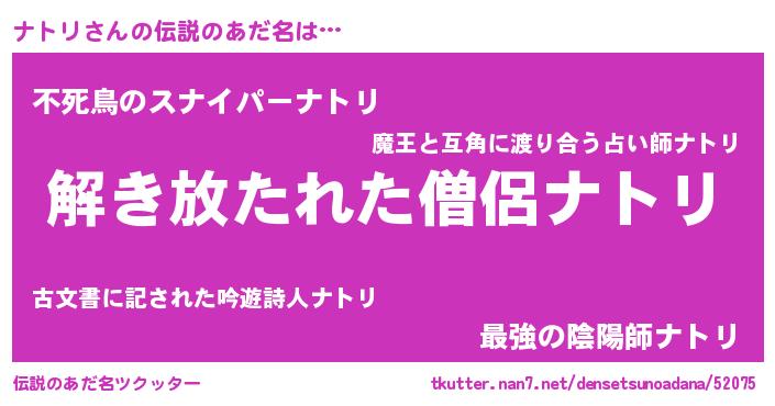 | ヒーロー風カッコイイあだ名 | 『最強戦士ナトリ』『魔戒騎士ナト』 |