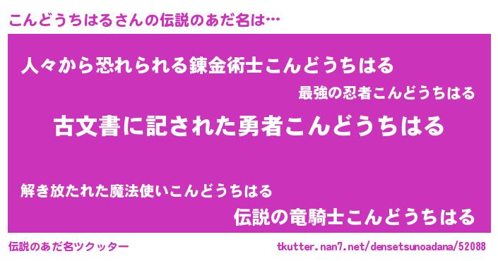 | ヒーロー風カッコイイあだ名 | 『最強戦士コンドウチハル』 |