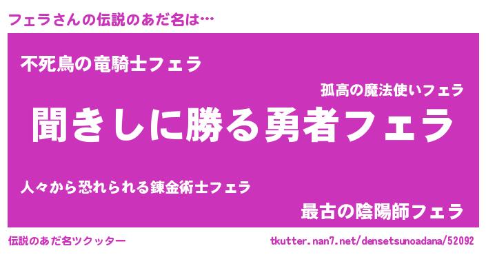| ヒーロー風カッコイイあだ名 | 『超時空戦士フェラ』『ネオフェラ』 |