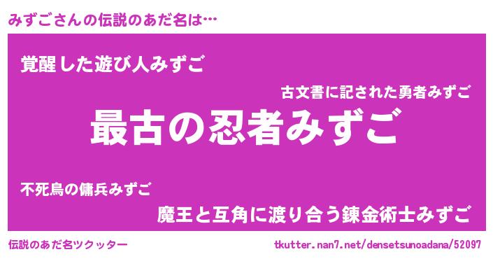 | ヒーロー風カッコイイあだ名 | 『ウルトラみずごマン』『幻影騎士ミズ』 |
