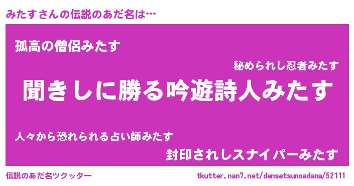 | 意味不明あだ名 | 『しいたけ科みたす属』『永久保存みたす』 |