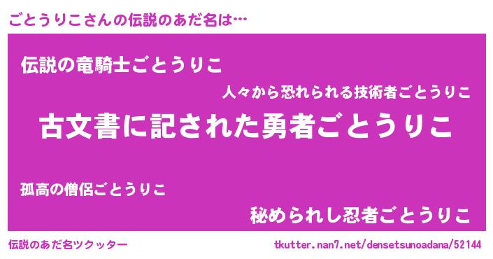 | 女子向けラノベタイトル風あだ名 | 『ごとうりこストレイドッグス』 |