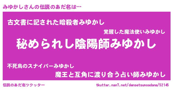 | ファンタジー風あだ名 | 『カークミユラー』『ミユディッシュ』 |