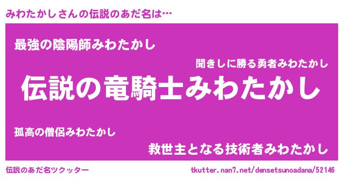 | 男性向けラノベタイトル風あだ名 | 『ミワタカシスレイヤー』 |