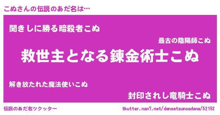 | ヒーロー風カッコイイあだ名 | 『最強戦士コヌ』『友情の使者こぬ』 |