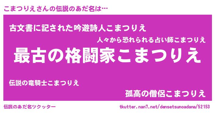 | 男性向けラノベタイトル風あだ名 | 『この素晴らしい世界にこまつりえを!』 |