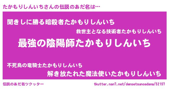| ファンタジー風あだ名 | 『エターナルタカモリシンイチー』 |