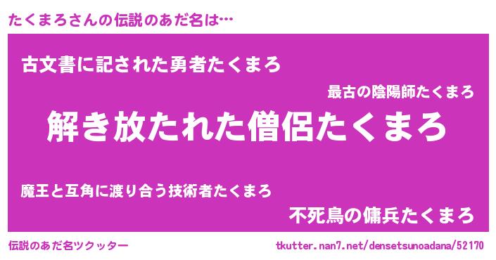 | 意味不明あだ名 | 『とにかく怪しいたくまろ』 |