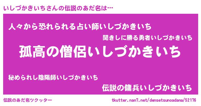 | 男性向けラノベタイトル風あだ名 | 『イシヅカキイチスレイヤー』 |