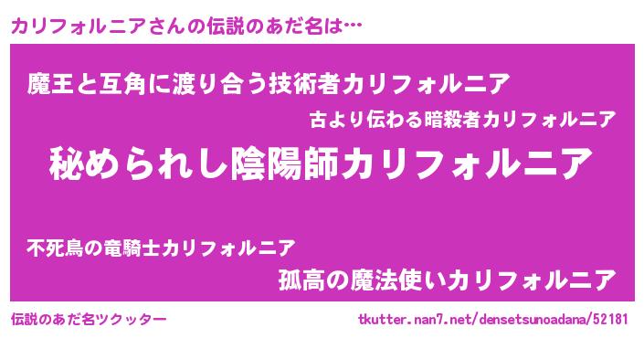 | ファンタジー風あだ名 | 『エターナルカリフォルニアー』 |