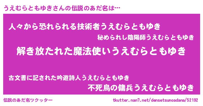 | 意味不明あだ名 | 『自称うえむらともゆき』 |