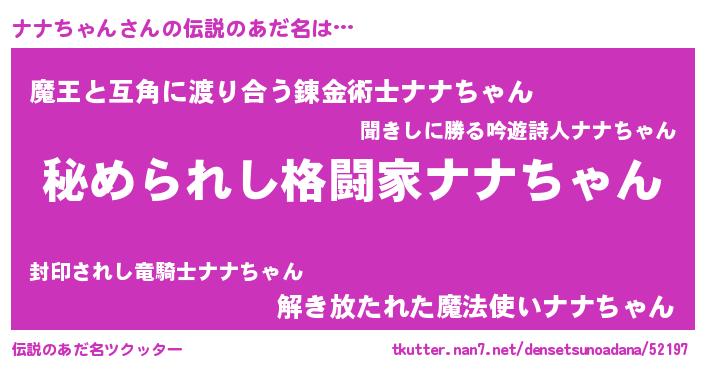 | 男性向けラノベタイトル風あだ名 | 『やはりナナちゃんの青春ラブコメはまちがっている 』 |