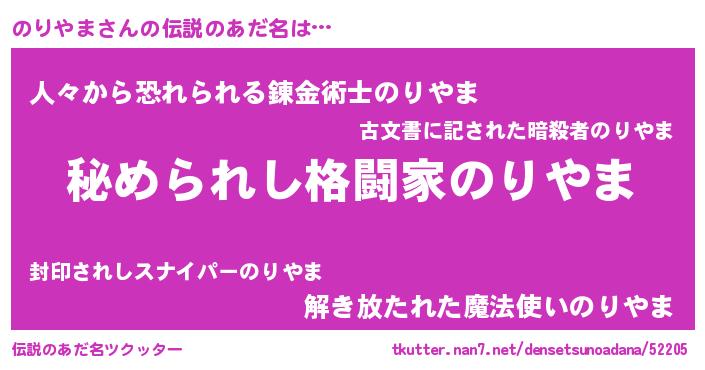 | 肩書あだ名 | 『のりやま少佐』『のりやま国家主席』 |