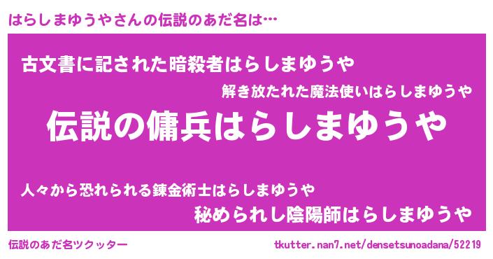 | ヒーロー風カッコイイあだ名 | 『スーパーハラシマユウヤ』 |