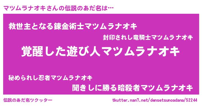 | 意味不明あだ名 | 『とにかく怪しいマツムラナオキ』 |
