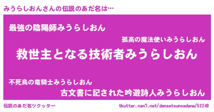 | 男性向けラノベタイトル風あだ名 | 『Re:みうらしおんから始める異世界生活』 |