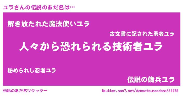 | ヘコむあだ名 | 『ユラお』『ユラふぇ~』『ユラ(笑)』 |