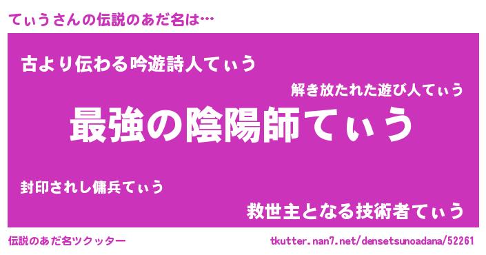 | ヒーロー風カッコイイあだ名 | 『最強戦士ティウ』『ウルトラてぃうマン』 |