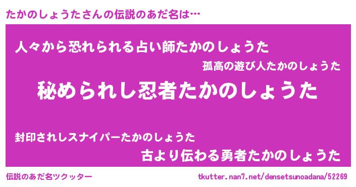 | 女子向けラノベタイトル風あだ名 | 『たかのしょうたなんてお断りですっ。』 |