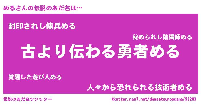 | ヒーロー風カッコイイあだ名 | 『ネオメル』『スーパーメル』 |