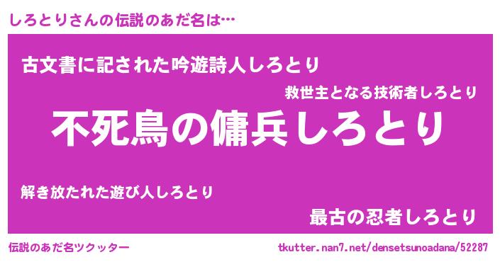 | 意味不明あだ名 | 『住所不定無職しろとり(47歳)』 |