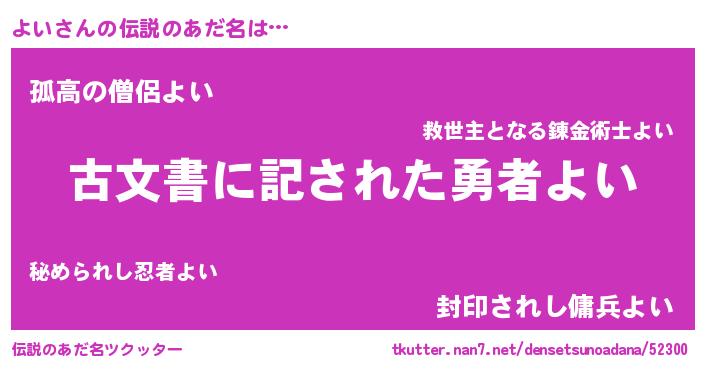 | 意味不明あだ名 | 『住所不定無職よい(85歳)』『永久保存よい』 |