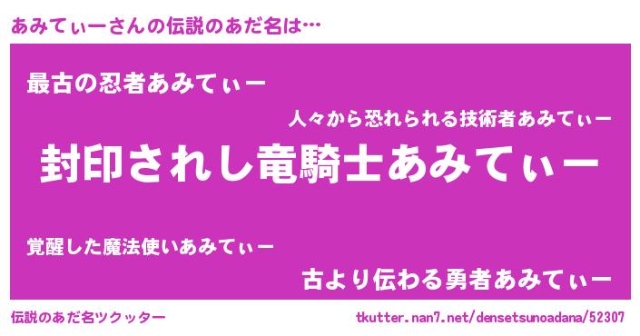 | ヒーロー風カッコイイあだ名 | 『仮面アミダー』『究極戦士アミティー』 |