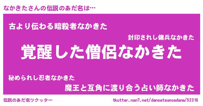 | 意味不明あだ名 | 『ヨモギ科なかきた属』『自称なかきた』 |