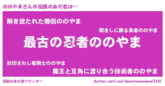 | 男性向けラノベタイトル風あだ名 | 『転生したらののやまだった件』 |