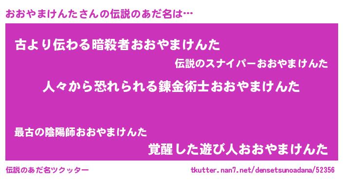 | 意味不明あだ名 | 『眠気覚ましガムおおやまけんた味』 |