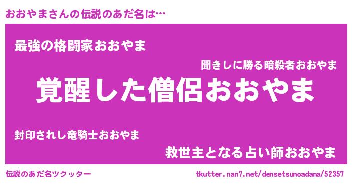 | ヒーロー風カッコイイあだ名 | 『幻影騎士オオ』『仮面オオダー』 |