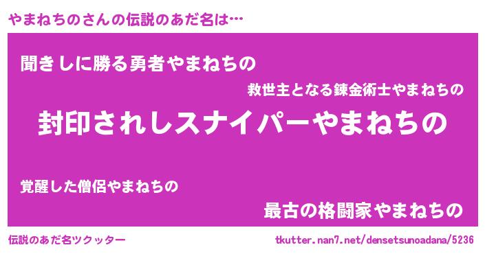 | 胡散臭い通販商品みたいなあだ名 | 『億万長者になれる霊験あらたかなお札…その名も「やまねちの」』 |