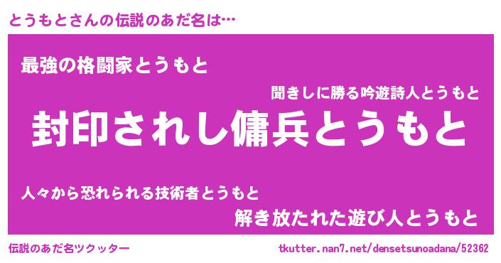 | ヒーロー風カッコイイあだ名 | 『究極戦士トウモト』『スーパートウモト』 |