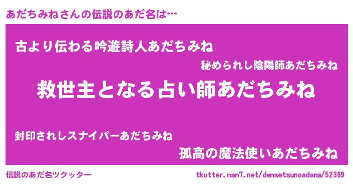 | ヒーロー風カッコイイあだ名 | 『天空の使者あだちみね』『銀牙騎士アダ』 |