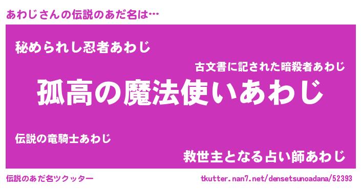 | 胡散臭い通販商品みたいなあだ名 | 『信頼と実績のサプリメント…その名も「あわじ」』 |