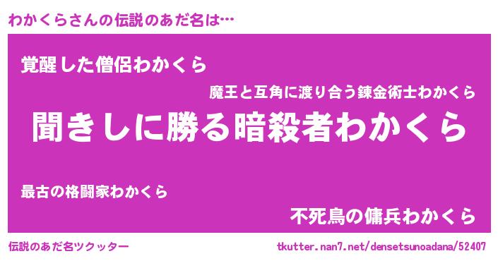 | 胡散臭い通販商品みたいなあだ名 | 『絶対に幸福をもたらす健康食品…その名も「わかくら」』 |