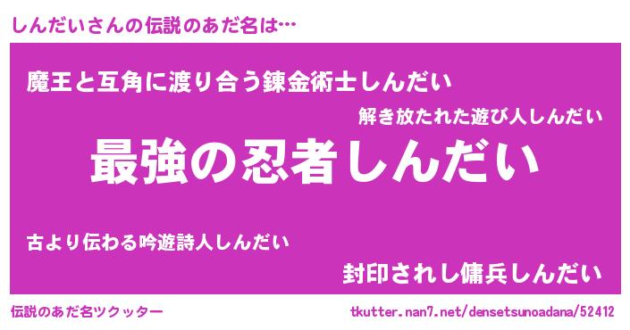 | 意味不明あだ名 | 『しんだいフォーエバー』『自称しんだい』 |