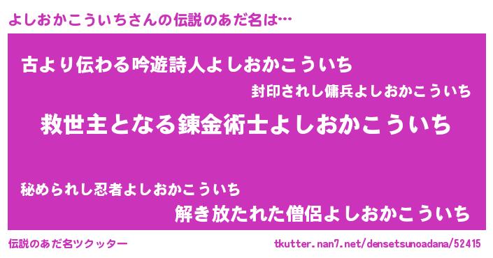 | ヒーロー風カッコイイあだ名 | 『天空の使者よしおかこういち』 |