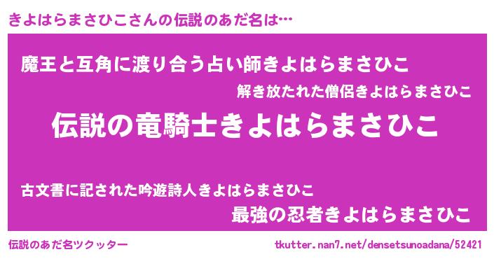 | 胡散臭い通販商品みたいなあだ名 | 『必ず成功するブレスレット…その名も「きよはらまさひこ」』 |