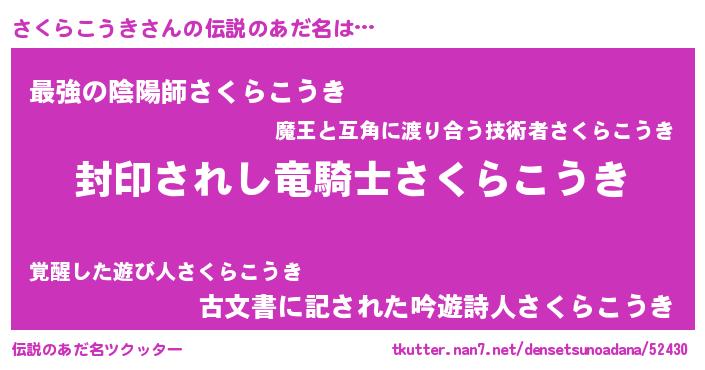 | 男性向けラノベタイトル風あだ名 | 『この素晴らしい世界にさくらこうきを!』 |